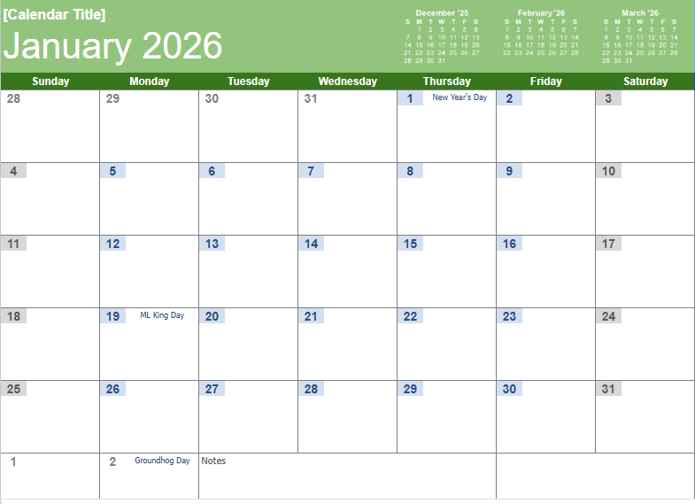 ✅ U.S. Federal Holidays Included – Includes holidays like New Year's Day, Independence Day, Labor Day, Thanksgiving, and more